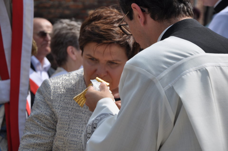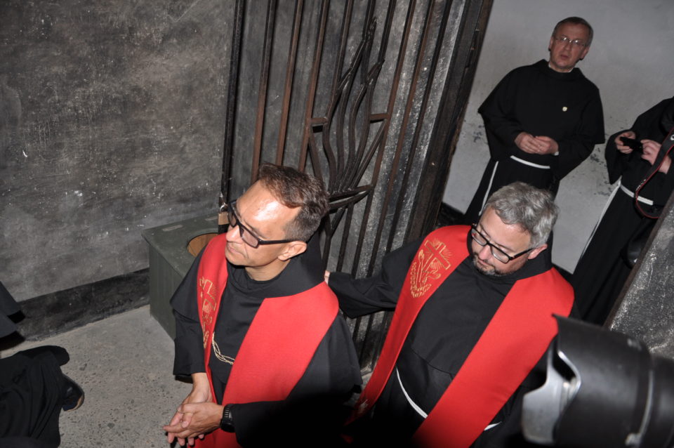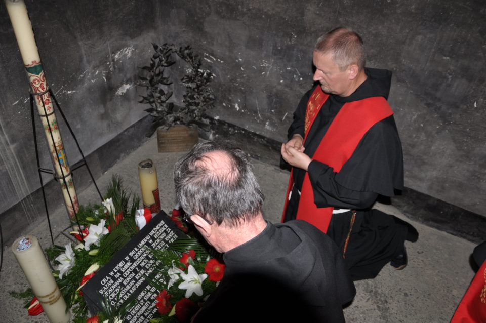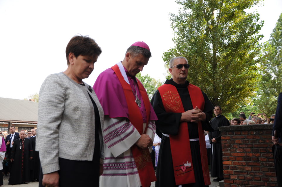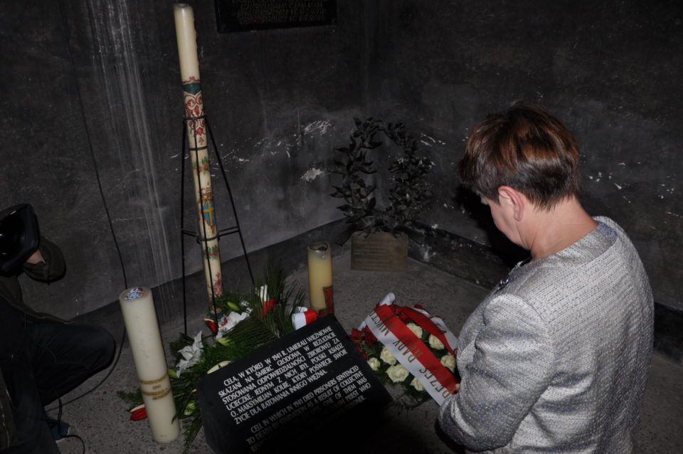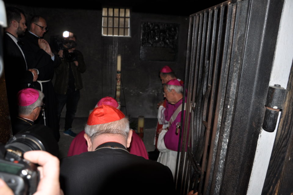 Delegacja z metropolitą krakowskim i biskupami oraz zakonnymi władzami franciszkanów nawiedziła przed Mszą celę śmierci św. Maksymiliana. Złożono tu kwiaty i modlono się w ciszy. Modliła się tu także szefowa polskiego rządu.