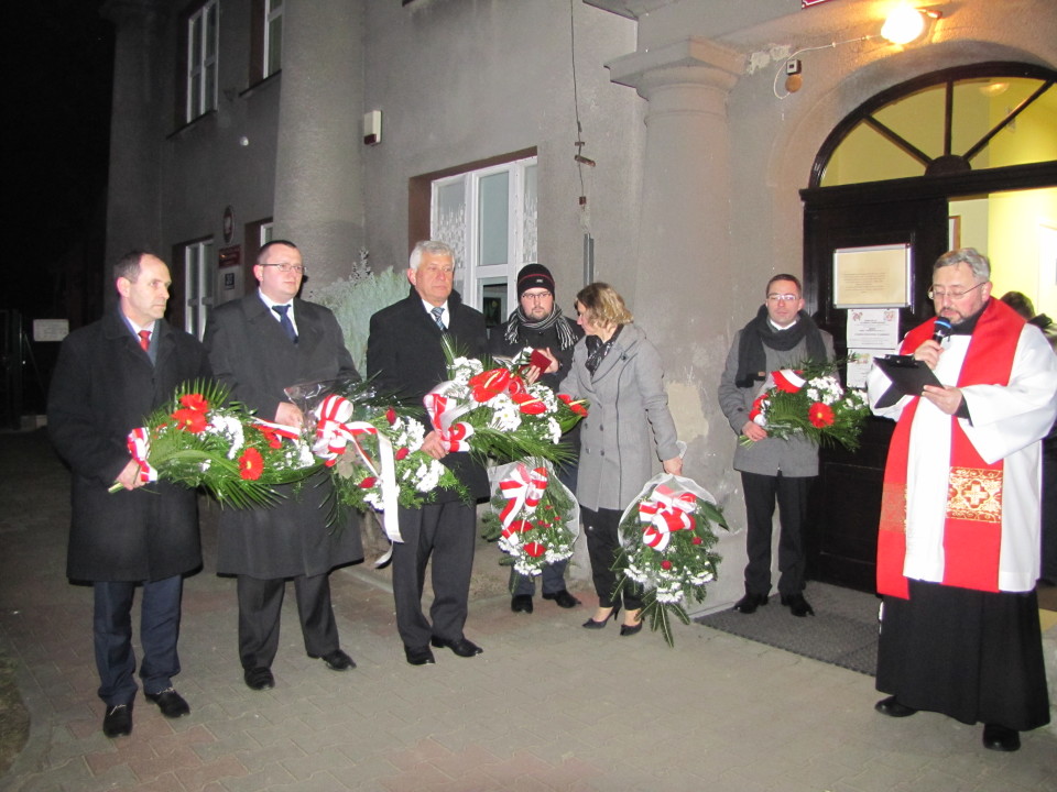 Modlitwy zakończyły się przed budynkiem Szkoły Podstawowej w Harmężach, przy której znajduje się tablica upamiętniająca wydarzenie sprzed 75. laty. Przedstawiciele osób wysiedlonych oraz władz gminy Oświęcim, złożyli kwiaty oraz zapalili znicze.