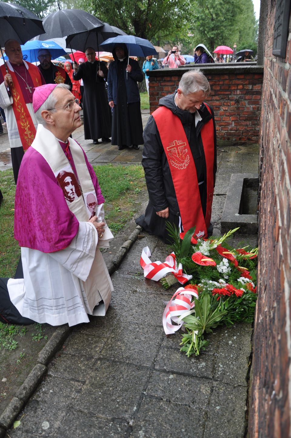 Arcybiskup zwrócił uwagę na przesłanie, które po 78 latach nadal przekazuje św. Maksymilian: choć nie ma grobu, krzyża i relikwii świętego, pozostaje pamięć, a Auschwitz jest miejscem w którym – mówiąc słowami Józefa Tischnera – „umarli mówią, stanowią jakieś mniej lub bardziej określone zobowiązania. To wiąże. Niekiedy umarli zobowiązują mocniej niż żywi. U grobu zmarłego człowiek uświadamia sobie, że jest dziedzicem. Co znaczy, że jest dziedzicem? Znaczy przede wszystkim: mieć udział w godności tych, którzy byli przed nami. Kontynuując, kontynuujemy przede wszystkim godność. Jesteśmy spadkobiercami dzięki przodkom”.