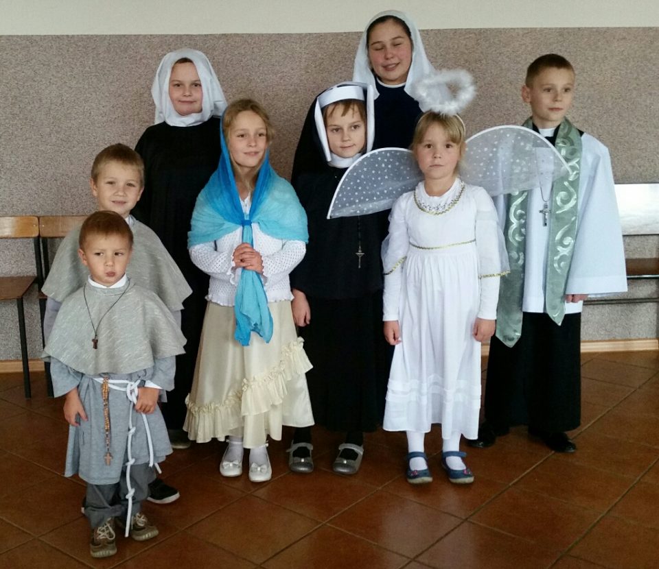 Dzieci przebrały się w stroje wybranych Świętych, co pozwoliło im oswajać się z dogmatem naszej wiary – Świętych obcowanie i przybliżyło postacie niektórych Świętych.