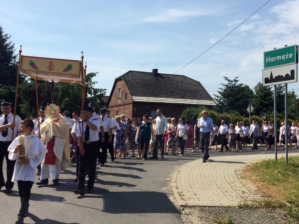 Po uroczystej Eucharystii sprawowanej przy Domu Ludowym w Harmężach wierni wyruszyli w procesji do czterech ołtarzy, aby „nawiedzić naszą wioskę, ale także, aby sam Jezus błogosławił naszym rodzinom i domostwom” – mówił na zakończenie Mszy proboszcz.