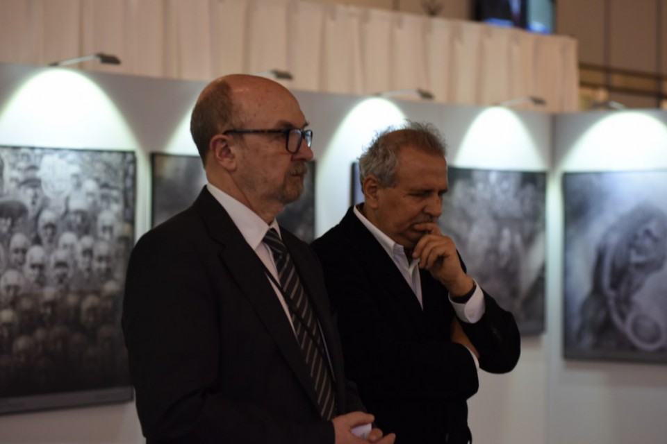 Wieczorem prof. Ryszard Legutko szef delegacji PiS w Europarlamencie zaprosił na wystawę „Auschwitz. Między piekłem a niebem. Św. Maksymilian w twórczości Mariana Kołodzieja”.