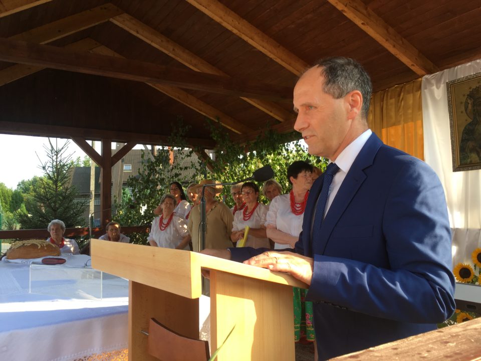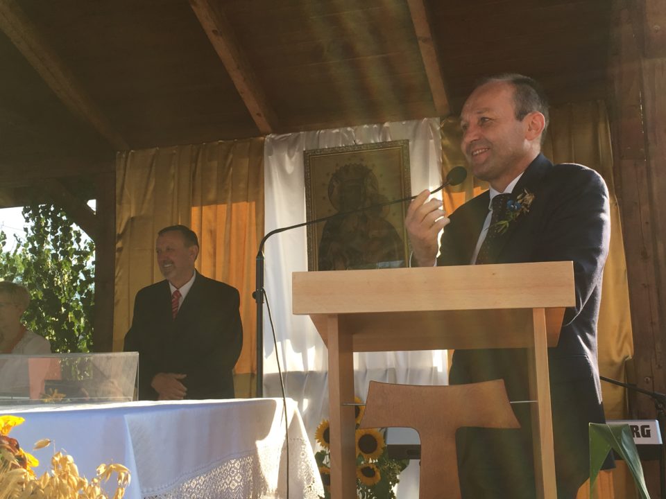 W takim dniu przychodzimy, aby dziękować Bogu za plony ziemi. Nie przypisujmy sobie wszelkie zasługi. Choć owoce pracy przychodzą przez nasze ręce, to przecież pochodzą od Stwórcy – powiedział podczas Mszy św. dożynkowej o. Piotr Cuber, proboszcz parafii.