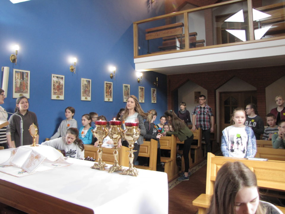 a także wykazały się swoją wiedzą i umiejętnościami w podchodach i teleturnieju. Dzieci z radością wyśpiewały pieśni Uwielbienia w przygotowanej Adoracji Najświętszego Sakramentu, oddając dar z siebie dla budowania wspólnoty Kościoła przez ręce Niepokalanej.