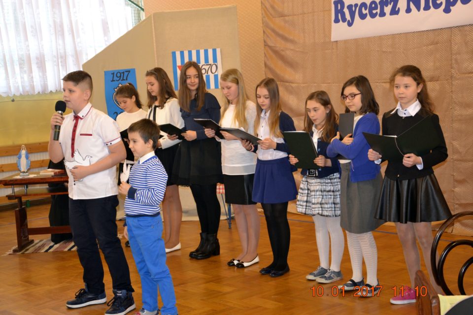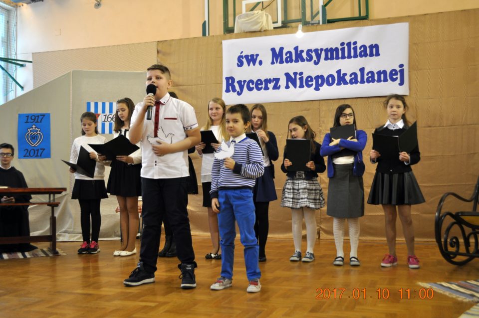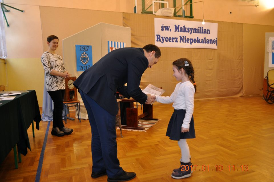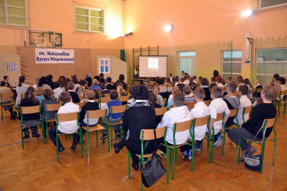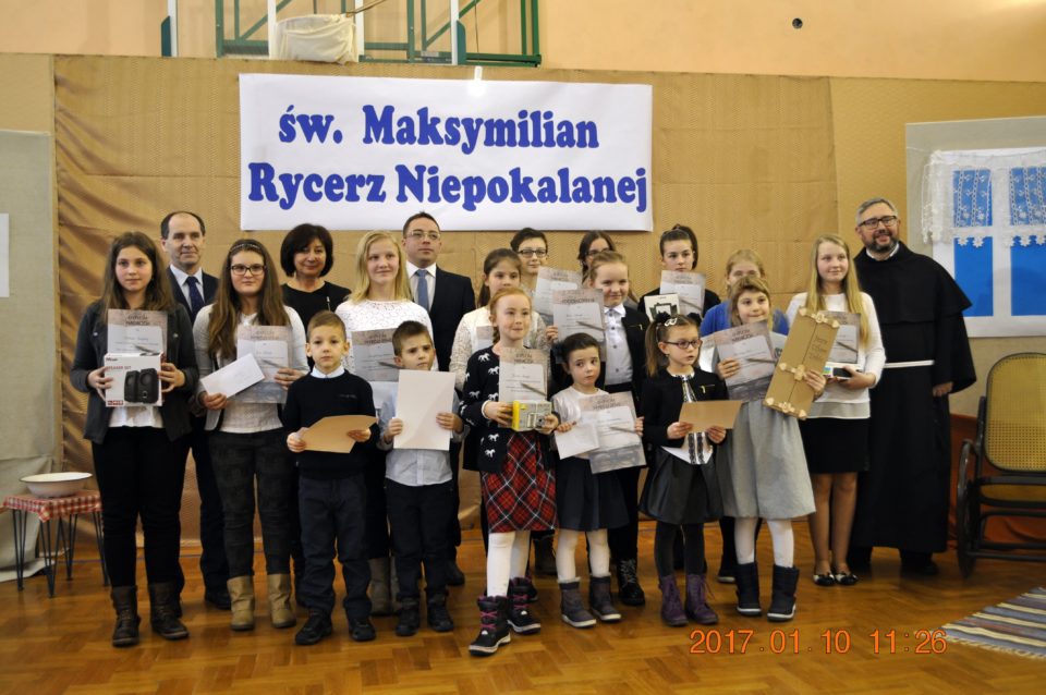 8 stycznia br. minęła 123 rocznica urodzin św. Maksymiliana, człowieka, który rozświetlał mroki nie tylko obozowych murów, lecz przede wszystkim ludzkich serc. Tegoroczne obchody Święta Szkoły zostały połączone z podsumowaniem II edycji Gminnego Konkursu Plastycznego i Literackiego o św. Maksymilianie.