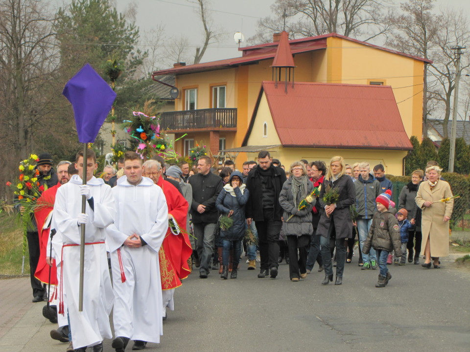 Tego dnia parafianie zgromadzili się w kaplicy Matki Bożej Częstochowskiej w Harmężach, aby uroczyście poświęcić palmy na pamiątkę wjazdu Jezusa do Jerozolimy oraz wziąć udział w Eucharystii.