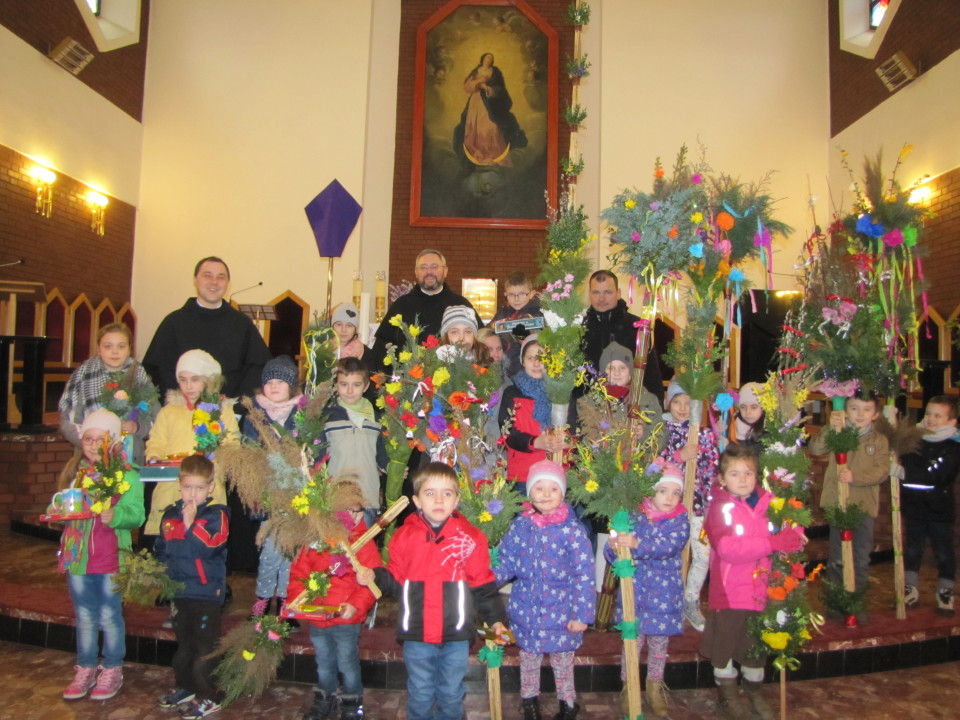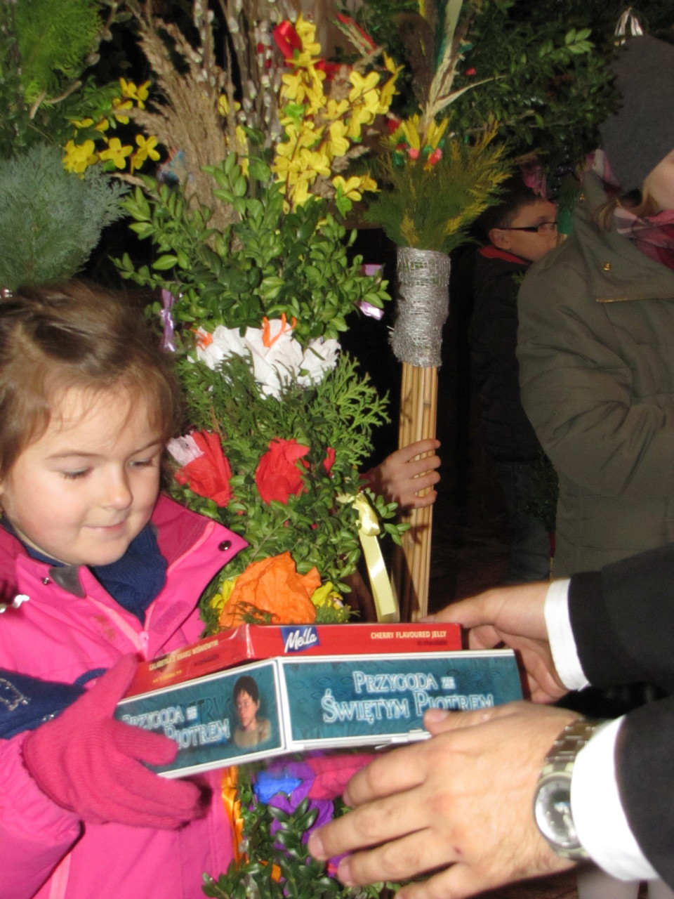 Po Mszy świętej jak co roku odbył się konkurs palm. Komisja powołana przez miejscowego proboszcza o. Piotra Cubera wyłoniła spośród wielu gałązek te najładniejsze i największe.