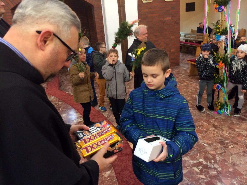 Po Mszy świętej jak co roku odbył się konkurs palm. Komisja powołana przez miejscowego proboszcza o. Piotra Cubera wyłoniła spośród wielu gałązek te najładniejsze i największe. Mali zwycięzcy otrzymali atrakcyjne nagrody.