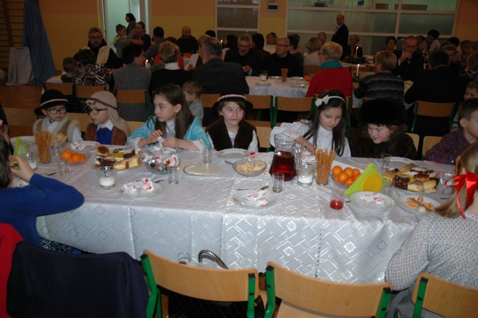 Serdecznie dziękujemy wszystkim za obecność i dzielenie się radością. Szczególne podziękowania za pomoc w zorganizowaniu tego wydarzenia: Radzie Parafialnej i Kołu Gospodyń Wiejskich za przygotowanie sali i obsługę spotkania, Pani Katarzynie Strycharskiej i dzieciom za przygotowanie jasełek, Paniom z grup parafialnych za upieczenie ciast, o. Arkadiuszowi i Panu Mateuszowi organiście za animowanie śpiewu kolęd podczas spotkania oraz wszystkim, którzy przyjęli nasze zaproszenie.
