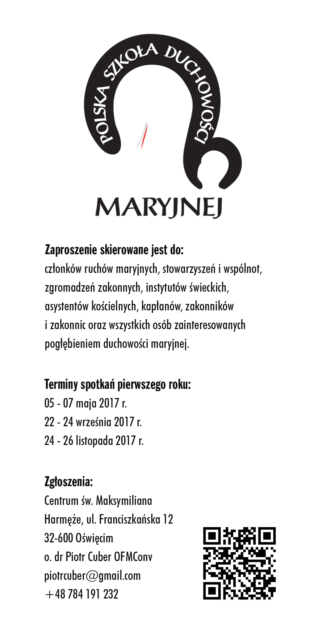 To nowa inicjatywa Centrum św. Maksymiliana w Harmężach skierowana do osób zaangażowanych we wspólnoty o duchowości maryjnej, które chciałyby pogłębić swoją znajomość Matki Bożej, poszerzyć horyzonty wiary, ożywić miłość, poznać nowe pomysły przeżywania duchowości maryjnej.