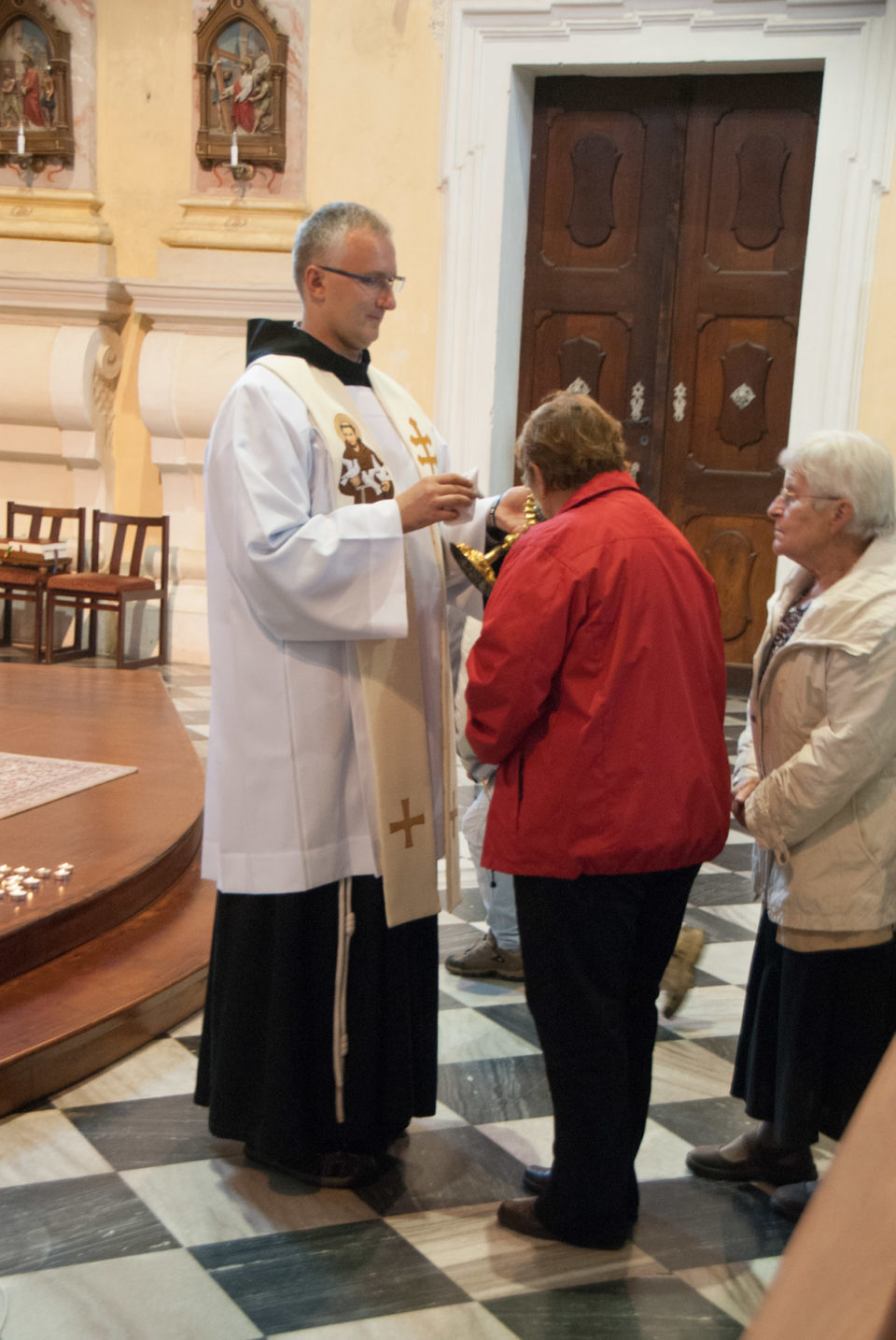 Następnie wszyscy udali się do sanktuarium przez Bramę Miłosierdzia, gdzie omówiono Koronkę do Bożego Miłosierdzia, a następnie odprawiono Mszę świętą, której przewodniczył o. Sebastian Gruca z Brna, a Słowo Boże wygłosił o. Piotr Cuber z Harmęż. Po mszy wszyscy przeszli się do domu św. Józefa na poczęstunek.