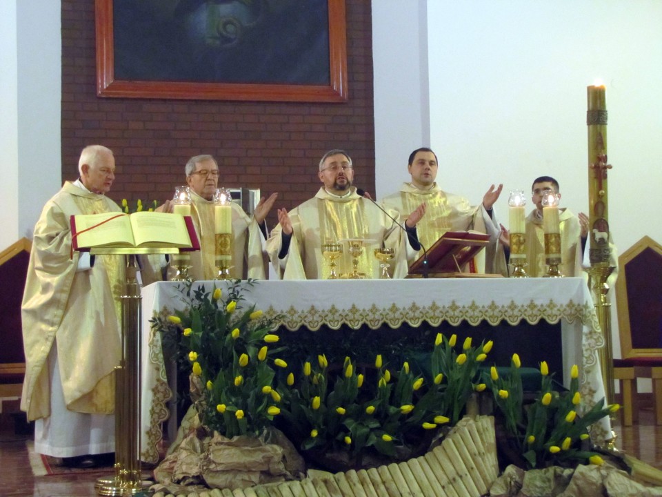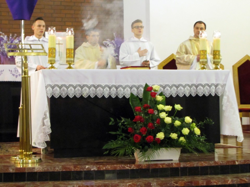 Msza św. Wieczerzy Pańskiej, której przewodniczył o. Arkadiusz Bąk wprowadziła nas do wieczernika, gdzie Chrystus w dzień przed swoją męką ustanowił dwa sakramenty Eucharystii i Kapłaństwa. Po uroczystej Mszy Świętej przedstawiciele rady parafialnej złożyli kapłanom serdeczne życzenia.