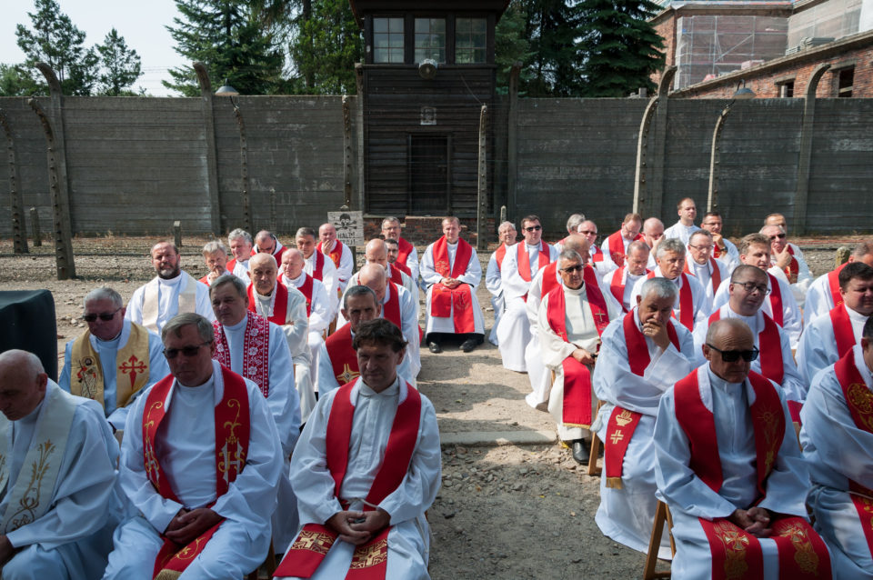 Przy polowym ołtarzu obok bloku 11 wspólnie z metropolitą krakowskim abp. Markiem Jędraszewskim modlili się: ordynariusz bielsko-żywiecki – bp Roman Pindel, bp Ludwig Schick z Bambergu, bp Stanisław Dowlaszewicz z Santa Cruz w Boliwii, Tadeusz Rakoczy – bielsko-żywiecki biskup senior, Kazimierz Górny – rzeszowski biskup senior i pierwszy proboszcz parafii św. Maksymiliana w Oświęcimiu, ojcowie franciszkanie konwentualni oraz kapłani z archidiecezji krakowskiej i diecezji bielsko-żywieckiej. Na zakończenie odśpiewany został hymn Te Deum Laudsmus, jako dziękczynienie za dar Eucharystii w miejscu męczeńskiej śmierci św. Maksymiliana, za ogłoszenie świętego patronem ziemi oświęcimskiej, a także, w sposób szczególny w tym roku, za dar wolnej Polski w 100-lecie odzyskania niepodległości. Arcybiskup Marek Jędraszewski poświęcił obraz z wizerunkiem św. Maksymiliana. Wierni mogli uczcić relikwie św. Maksymiliana oraz pomodlić się w celi śmierci.