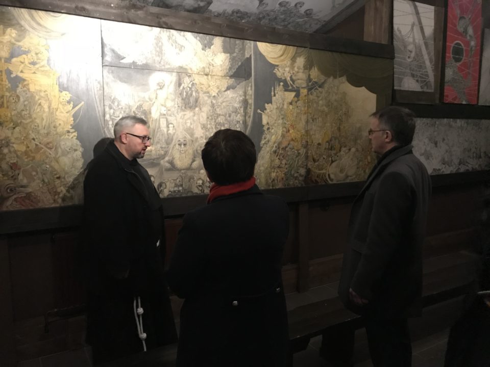Goście przybyli do Harmęż na zaproszenie Franciszkanów, którzy są kustoszami wystawy Kołodzieja. Dla pani wicepremier była to już kolejna wizyta na wystawie Kołodzieja, pan wiceminister zwiedzał ją po raz pierwszy. Przewodnikiem po ekspozycji był o. Piotr Cuber – gwardian tamtejszego klasztoru.