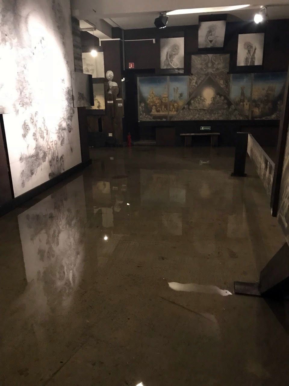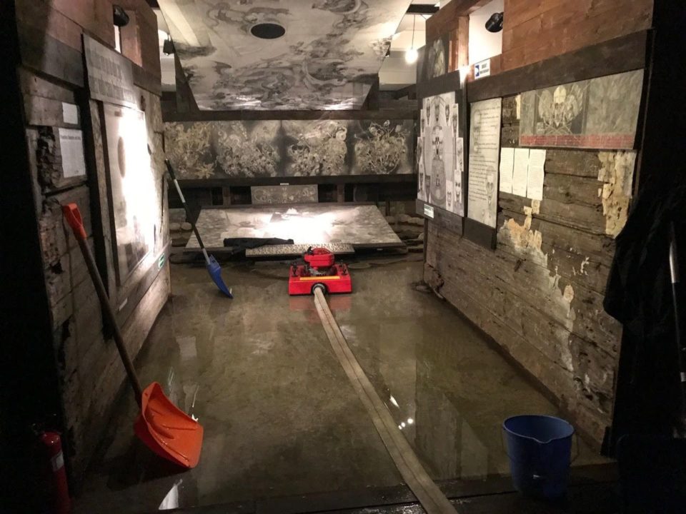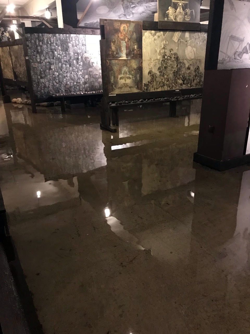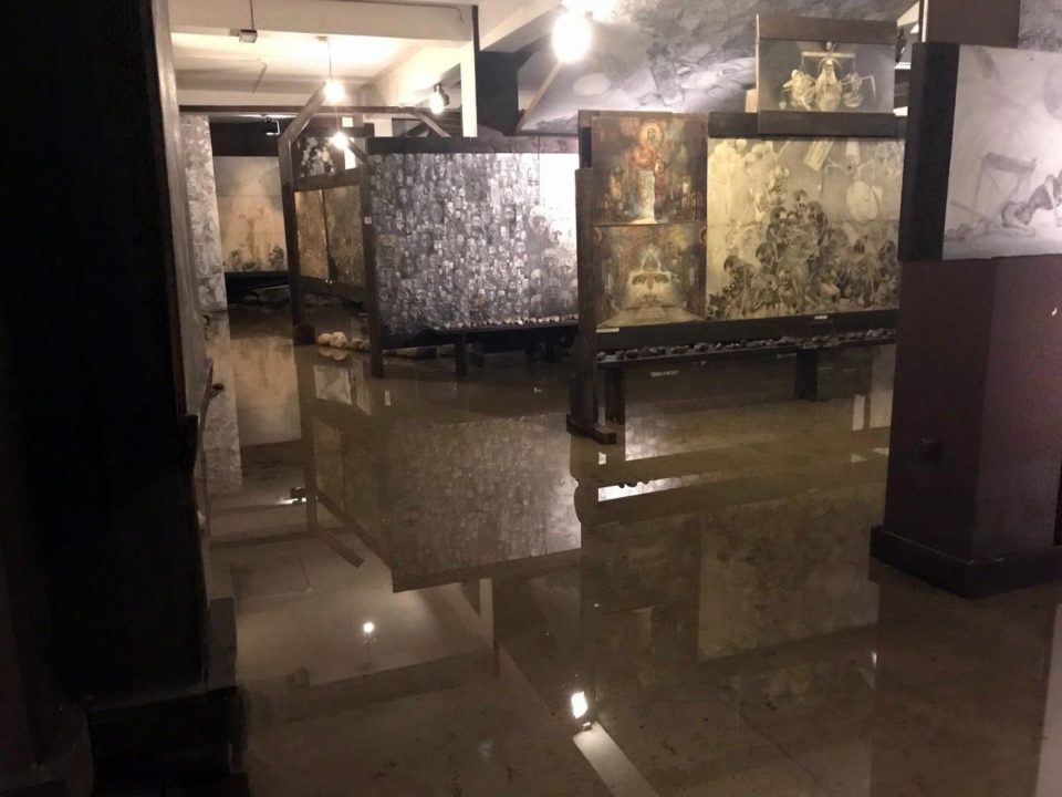 Obecnie trwa osuszanie pomieszczeń wystawy. Jutro konserwatorzy przystąpią do dezynfekcji części drewnianych nasiąkniętych wodą. Na obecnym etapie wystawie nie zagraża niebezpieczeństwo.