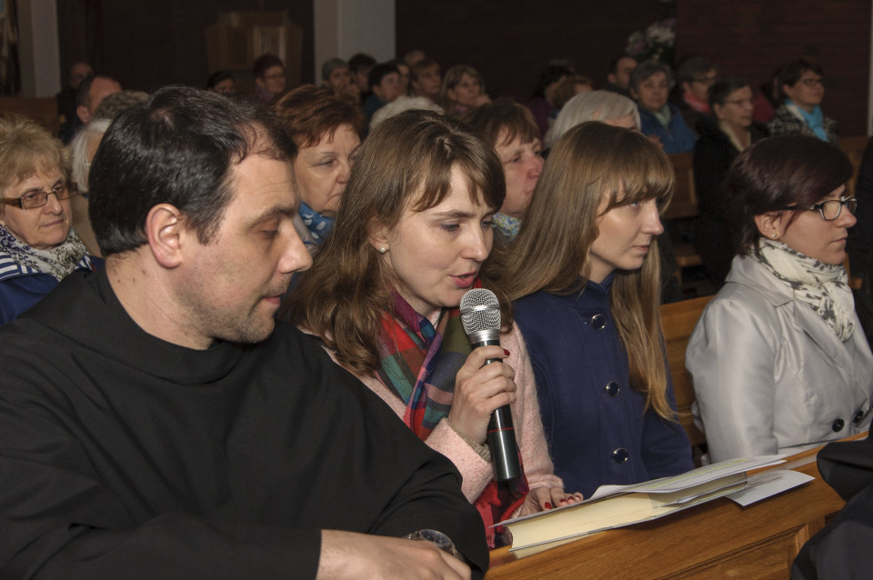 W niedzielny poranek naszym prelegentem był o. prof. dr hab. Zdzisław Kijas, franciszkanin który przyleciał do nas z Rzymu. Tematem jego wystąpienia było miłosierdzie w praktyce. Na wstępie zaznaczył, że postawę miłosierdzia powinniśmy skierować najpierw do nas samych – będąc świadomym własnej osoby i szanując siebie. Później dopiero zwrócić się do innych, szukając czego rzeczywiście potrzebują, współodczuwając. Zachęcił, by nasze czyny miłosierdzia inspirowały innych do przemyśleń, stawiania pytań, do naśladowania. Byśmy byli czytelnymi świadkami Jezusa Miłosiernego!