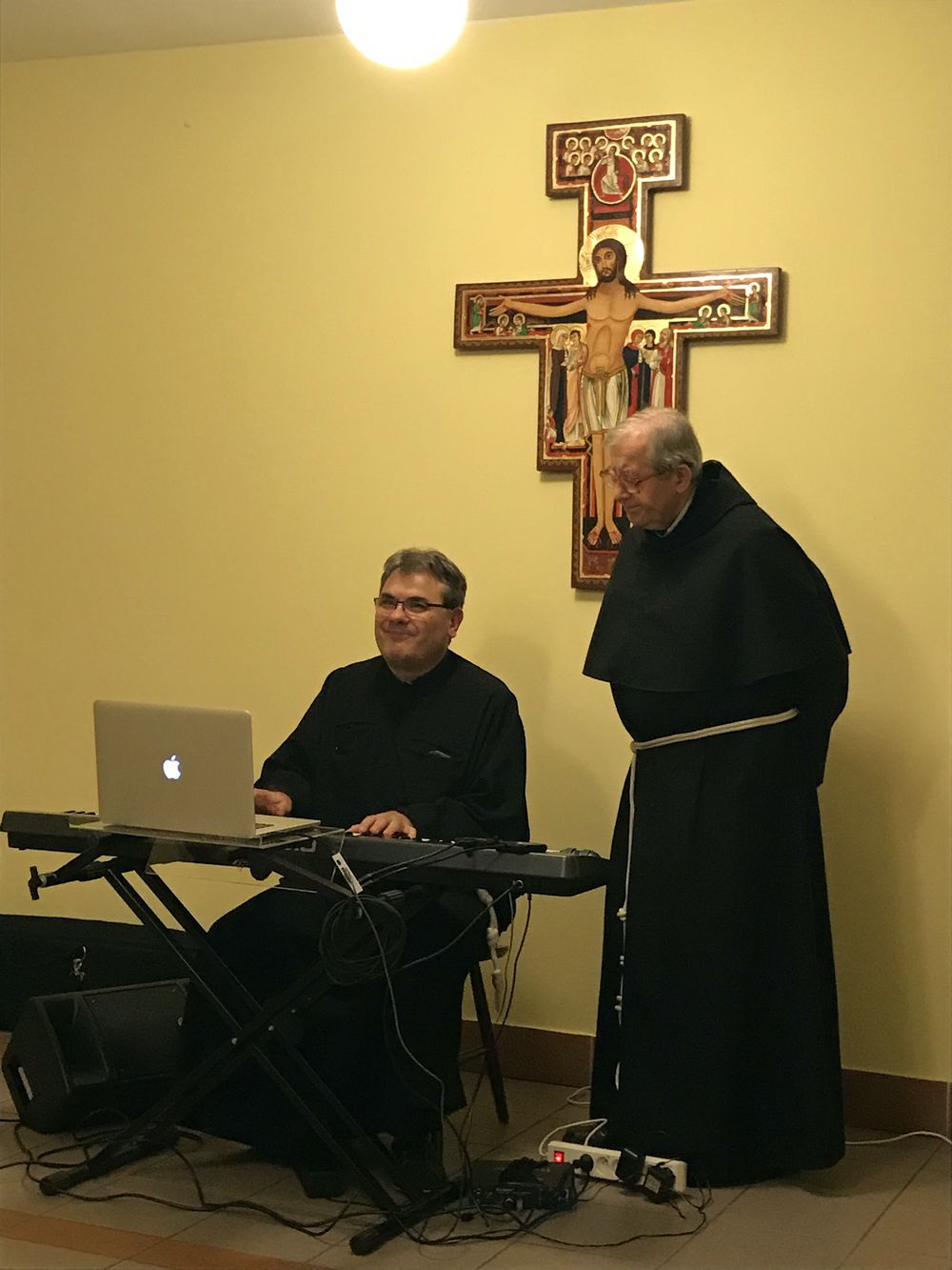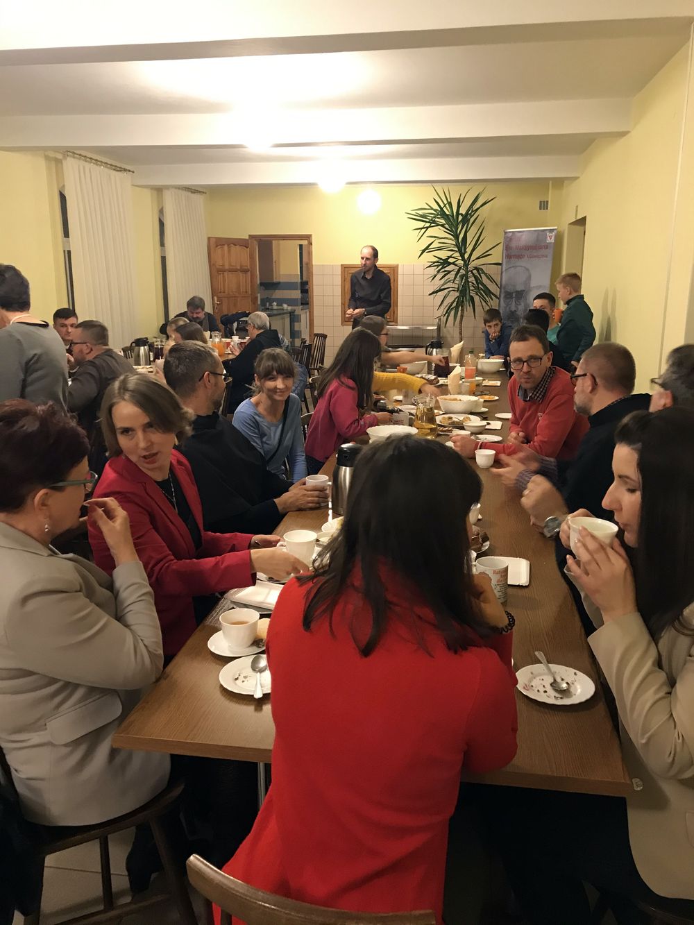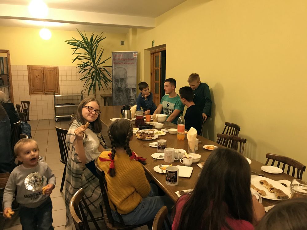 Wojownicy Maryi, Rycerze Niepokalanej, członkowie Szkoły Ewangelizacji Niepokalanej oraz Żywego Różańca rozpoczęli spotkanie od Eucharystii w Kościele parafialnym. Po mszy w refektarzu klasztornym franciszkanów goście zgromadzili się wokół stołów wraz ze wspólnotą klasztorną.