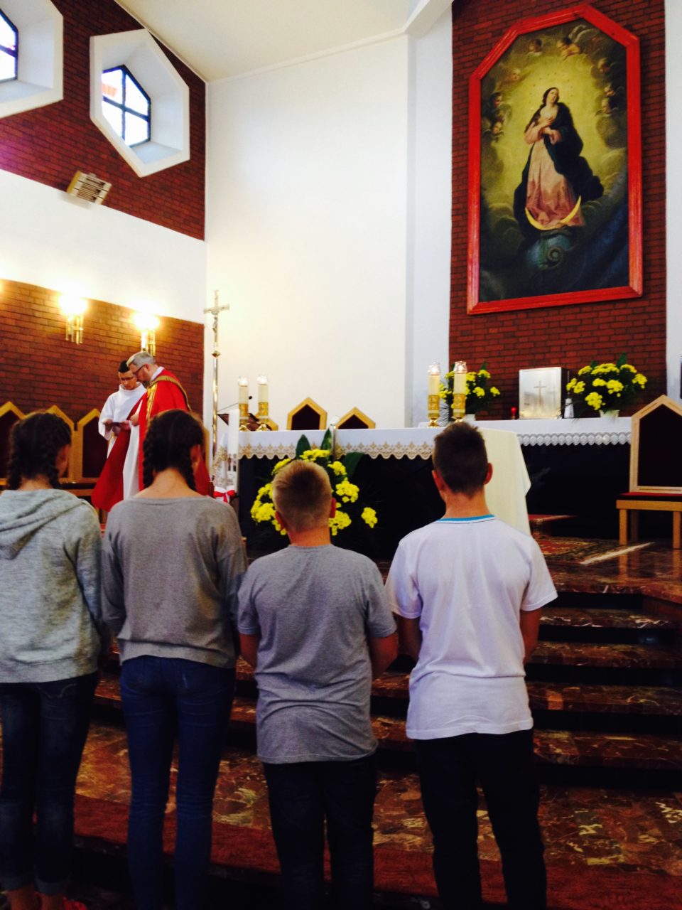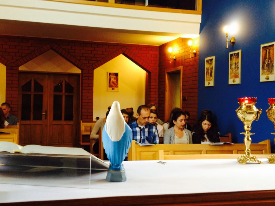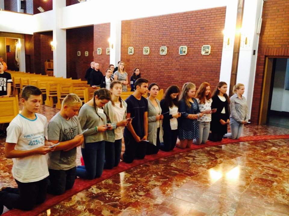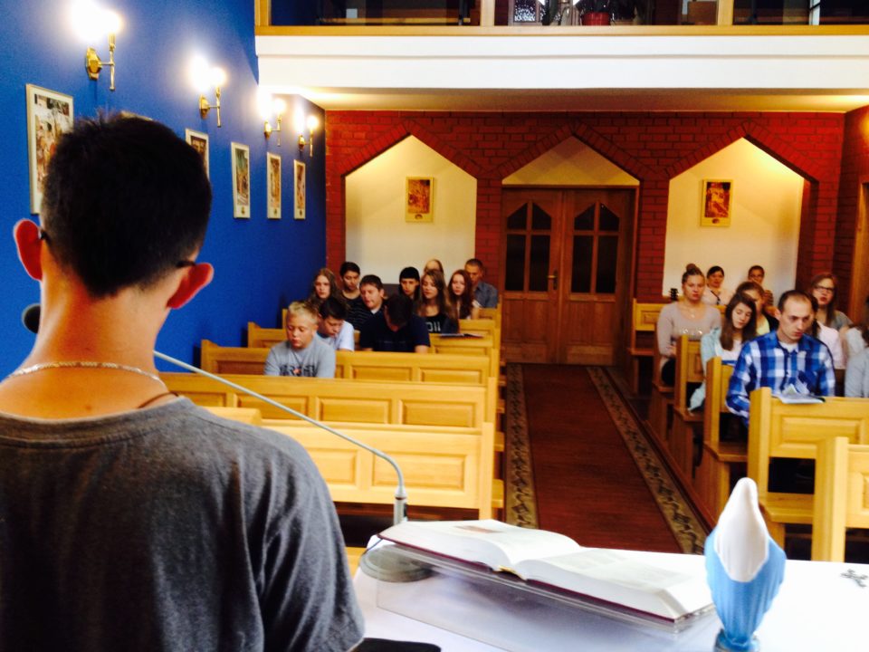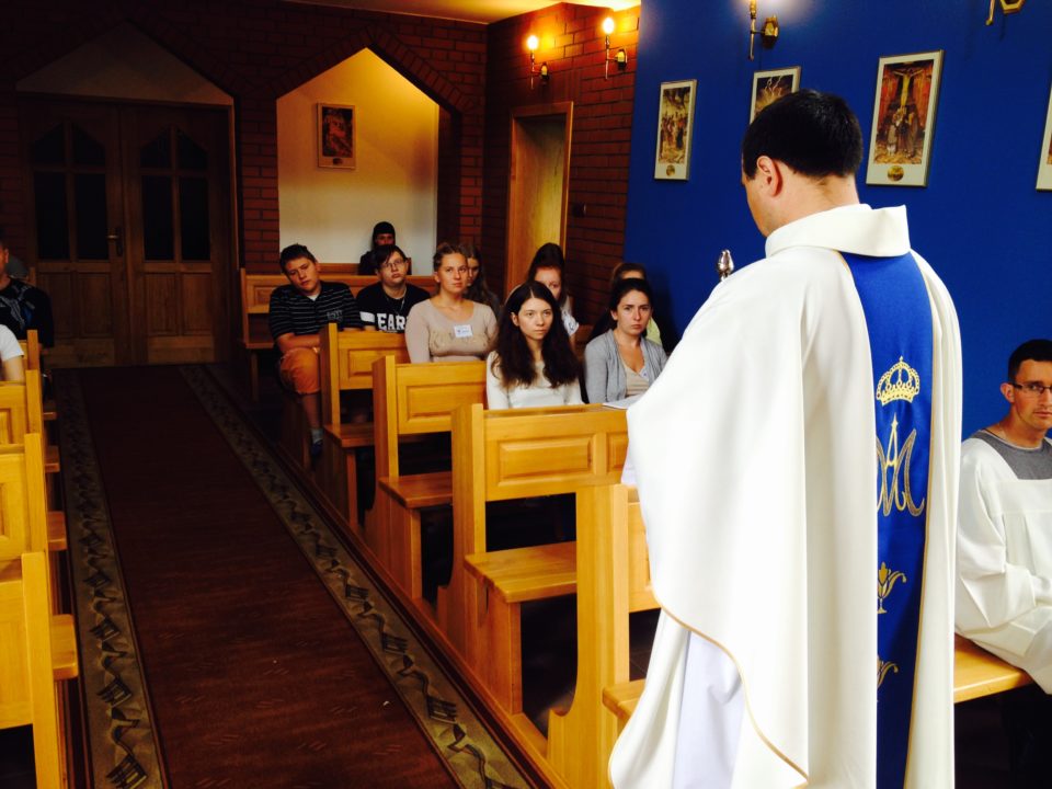 Codziennej Eucharystii towarzyszyły wykłady na temat liturgii, lekcje śpiewu pod czujnym okiem Justyny i o. Arka, jak również prace w grupach, podczas których przybliżaliśmy sobie postać Maryi przy pomocy Pisma Świętego, uczyliśmy się odmawiać różaniec z dopowiedzeniami oraz zapoznawaliśmy się z życiem i działalnością św. Maksymiliana, historią cudownego medalika i Rycerstwa Niepokalanej. Nie zabrakło też zabawy – niewątpliwie najwięcej radości sprawiło wesele w Kanie Galilejskiej, na które zaprosił nas o. Hieronim. Zwieńczeniem każdego dnia była wspólna adoracja Najświętszego Sakramentu.